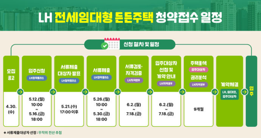 2025년 전세임대형 든든주택 1순위 입주자 모집은 다음과 같은 일정과 절차로 진행됩니다.