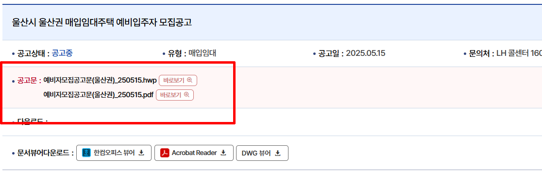 공고문은 PDF 또는 한글파일 형식으로 제공됨