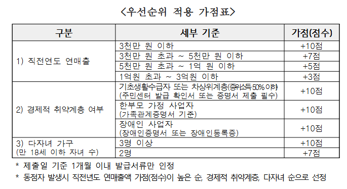 신청기간 동안 지원목표보다 초과접수된 경우 우선순위 적용됩니다