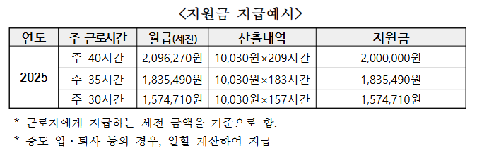 · 인건비는 후 지급 방식: 고용 후 지급한 내역을 확인한 뒤 지원금이 지급되므로 초기 급여 지급은 소상공인이 부담해야 함