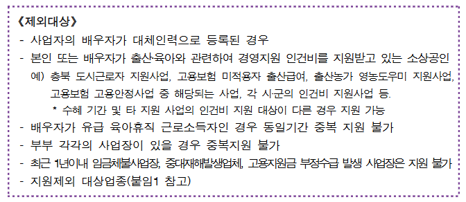 · 지원방식: 대체인력 고용 후 실제 인건비를 지급한 내역에 따라 지급