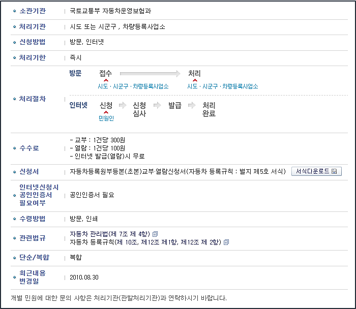 | 방문 신청 | 가능 (시청, 구청, 차량등록사업소) | 소액 발생 | 신분증 필수 지참 |