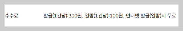 | 구분 | 발급 가능 여부 | 수수료 | 비고 |