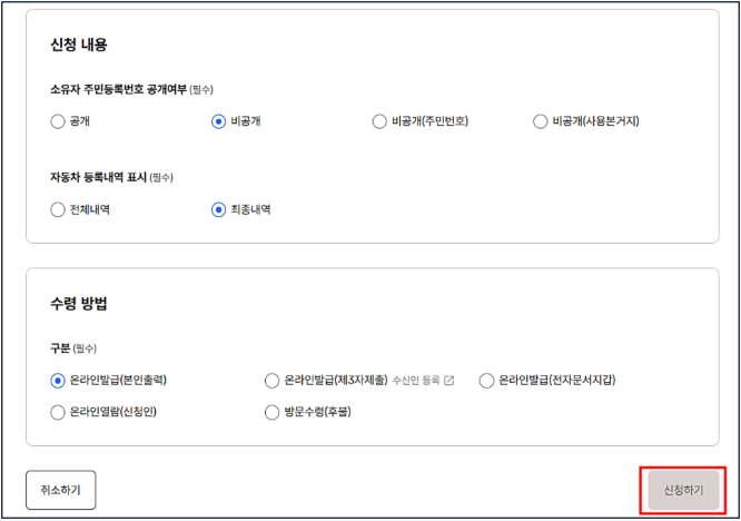 STEP 6. 수령방법 선택 및 신청 완료