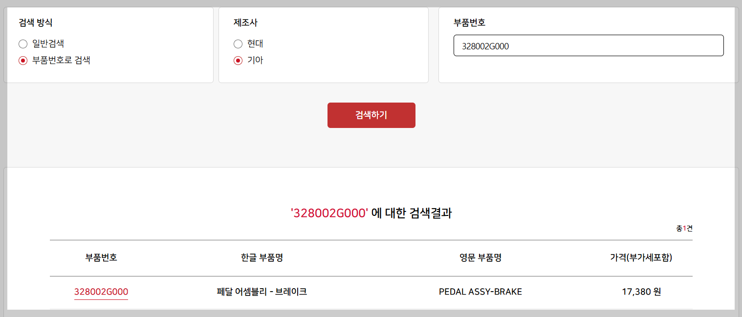 · 기아차 부품도 동일한 부품몰에서 확인 가능