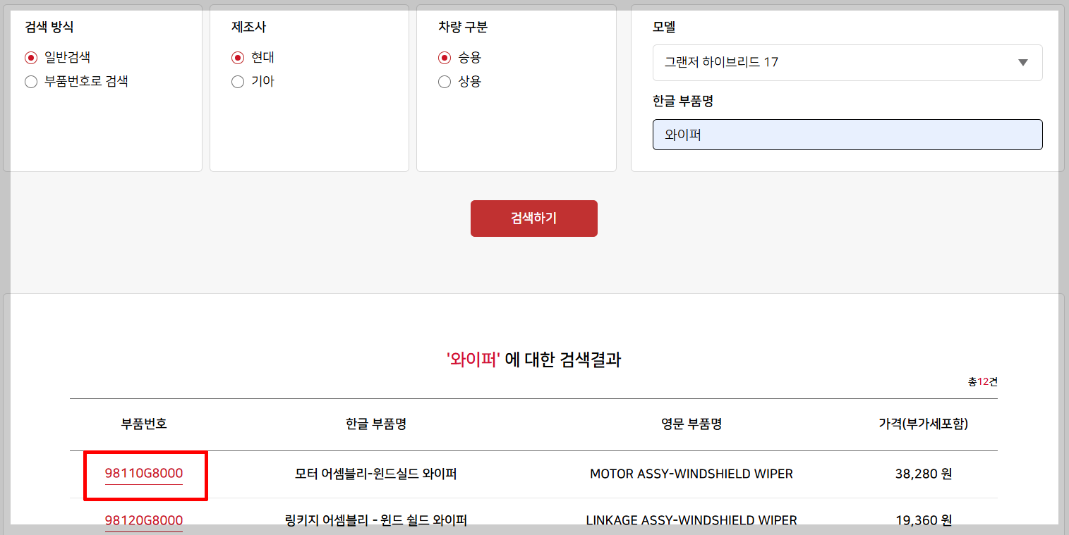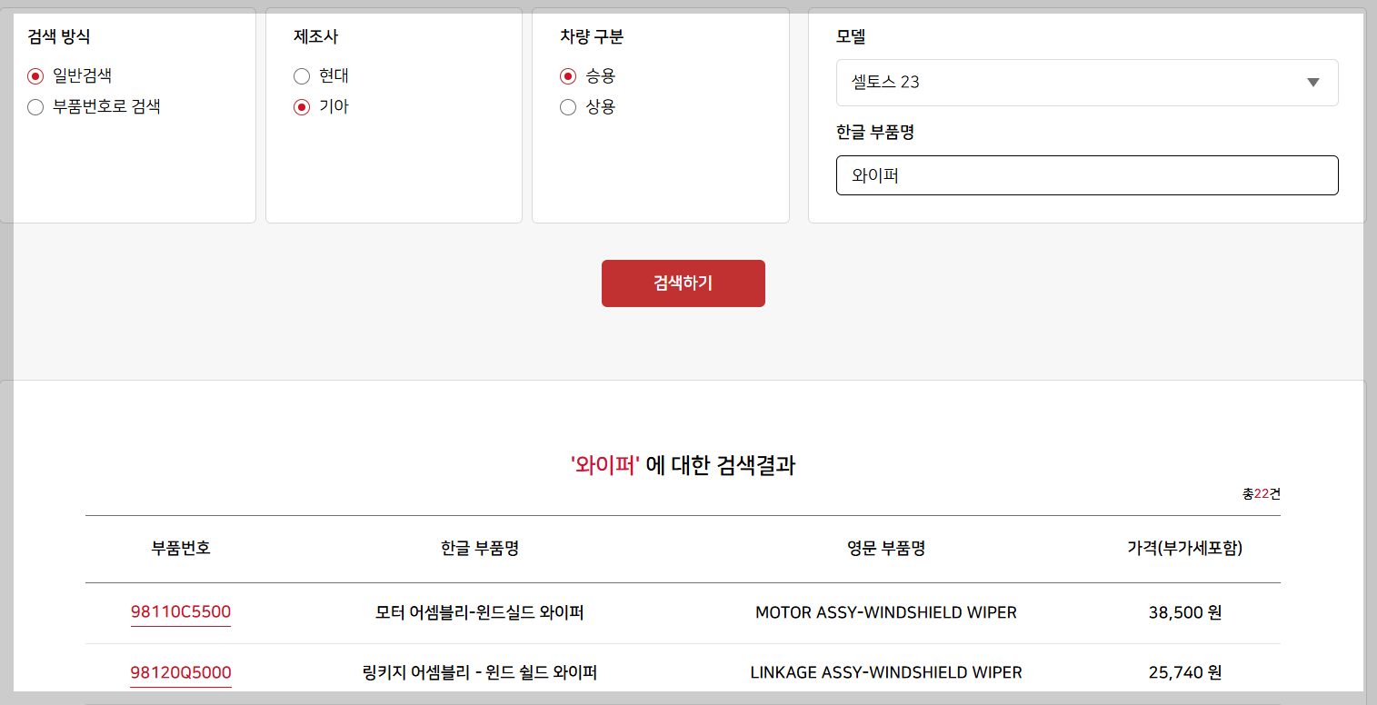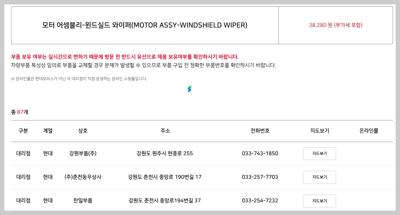 동일 부품이라도 대리점별 가격 차이가 발생할 수 있으니 다수 조회 추천합니다.