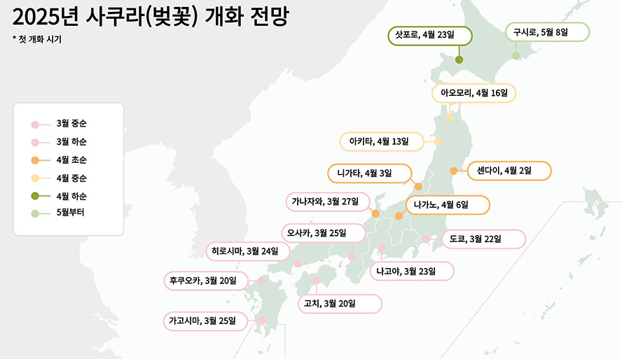 2025년 일본 벚꽃 개화 시기와 지역별 벚꽃 명소