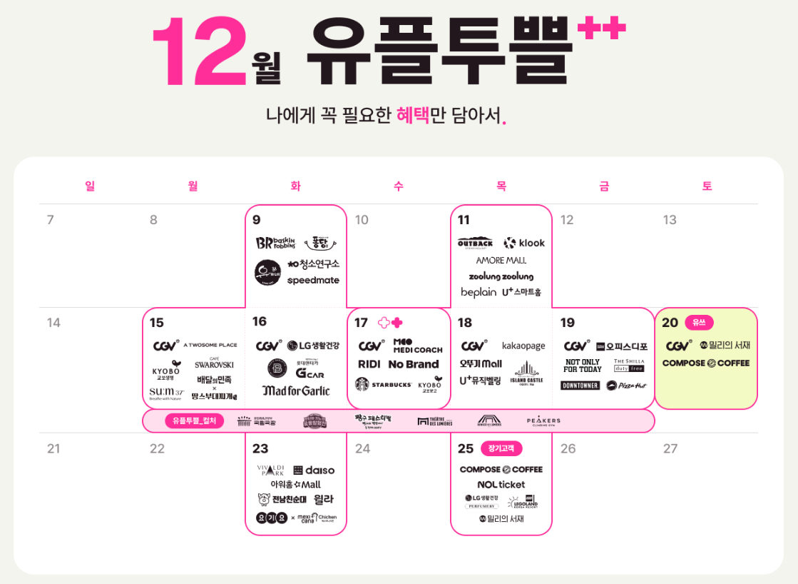 그 결과 나온 것이 바로 이번 12월 ‘유플투쁠’ 할인 이벤트입니다.